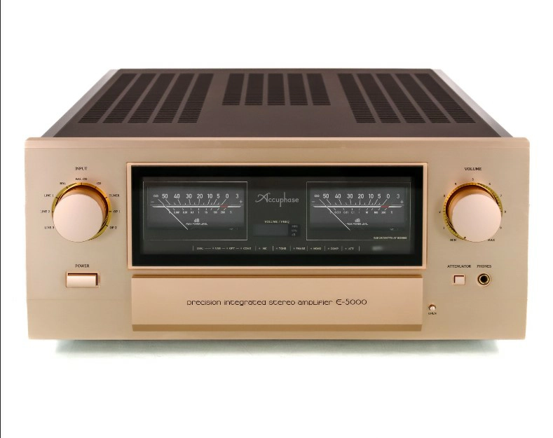 O amplificador integrado Accuphase E-5000 é um componente de áudio de ultra-alta fidelidade lançado para comemorar o 50º aniversário da marca, representando o ápice da engenharia em amplificação de Classe AB. Ele é uma unidade de potência massiva que busca combinar a delicadeza dos modelos de Classe A com a força bruta necessária para controlar qualquer alto-falante do mercado, sendo desenvolvido com uma topologia totalmente balanceada da entrada até a saída. O design externo apresenta o icônico painel frontal em champagne dourado com grandes medidores VU analógicos e botões de controle usinados com precisão, garantindo uma estética atemporal que é o elemento essencial para refletir a filosofia de fabricação artesanal japonesa, permitindo que o usuário sinta a qualidade física do equipamento em cada interação.