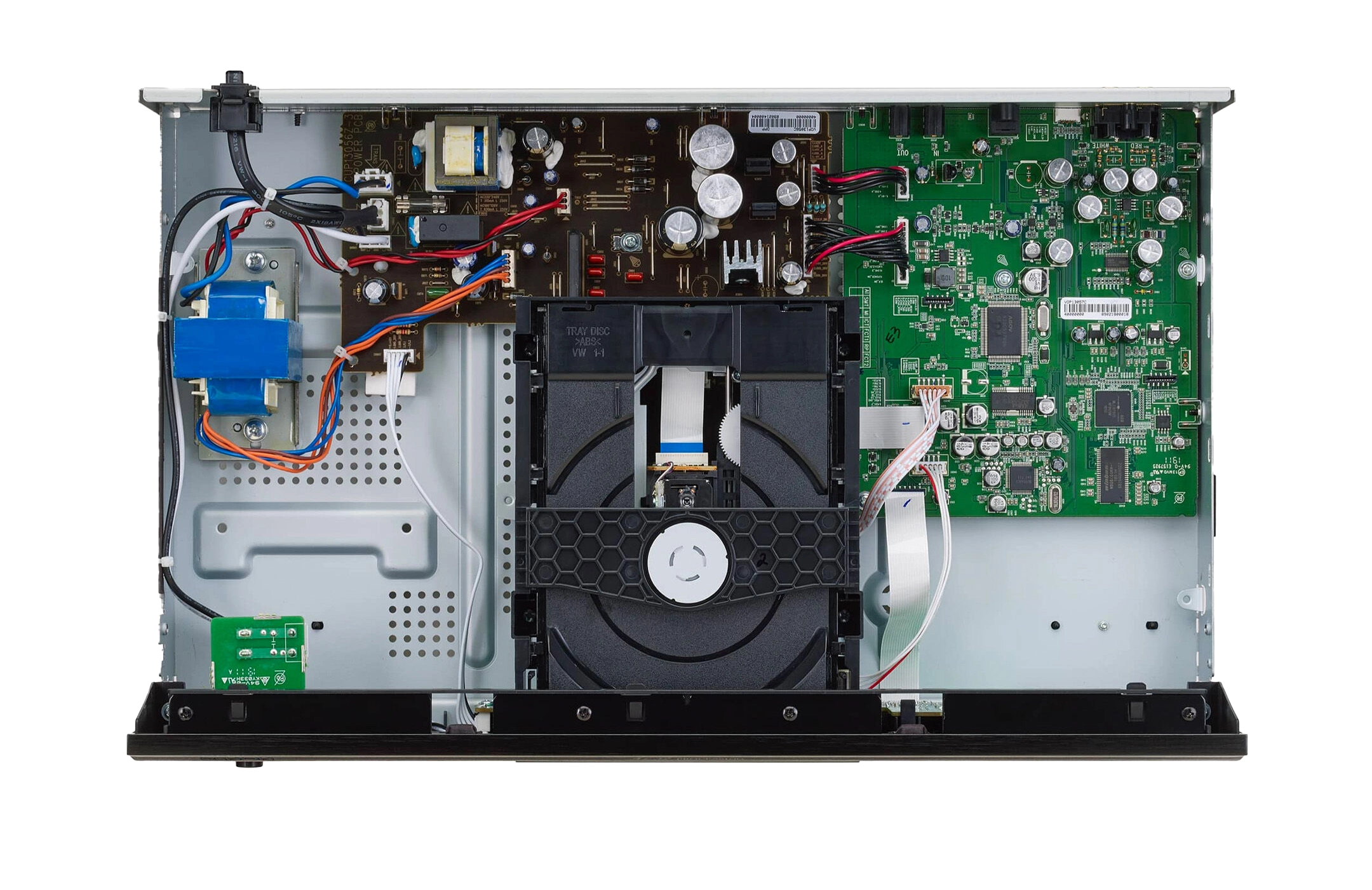 O DCD-600NE incorpora o Circuito de Fonte de Alimentação Centralizado (Centralized Power Supply Circuit) da Denon. Este design visa proteger os delicados circuitos de áudio de interferências e vibrações. Embora seja um modelo de entrada, ele é meticulosamente projetado para fornecer um som claro e dinâmico. Um recurso chave é o modo Pure Direct, que desliga a saída digital e a tela frontal, eliminando potenciais fontes de ruído e permitindo a saída de um sinal analógico mais limpo e detalhado.