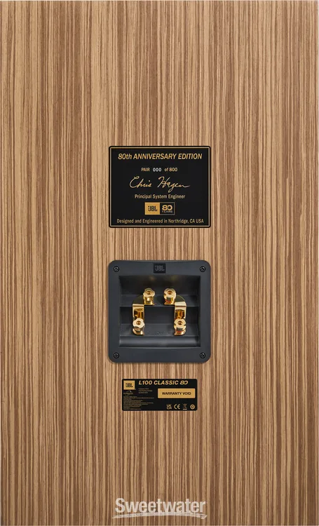 As conexões na parte traseira apresentam bornes de ligação duplos banhados a ouro de alta resistência, que suportam configurações de bi-cablagem ou bi-amplificação. Ela é uma caixa projetada para ser utilizada com suportes metálicos inclinados, que direcionam o eixo acústico para os ouvidos do espectador, otimizando o palco sonoro e a imagem estéreo. A JBL L100 Classic 80 é uma peça de colecionador que une o prestígio histórico da marca com a performance sonora mais avançada disponível na atualidade.