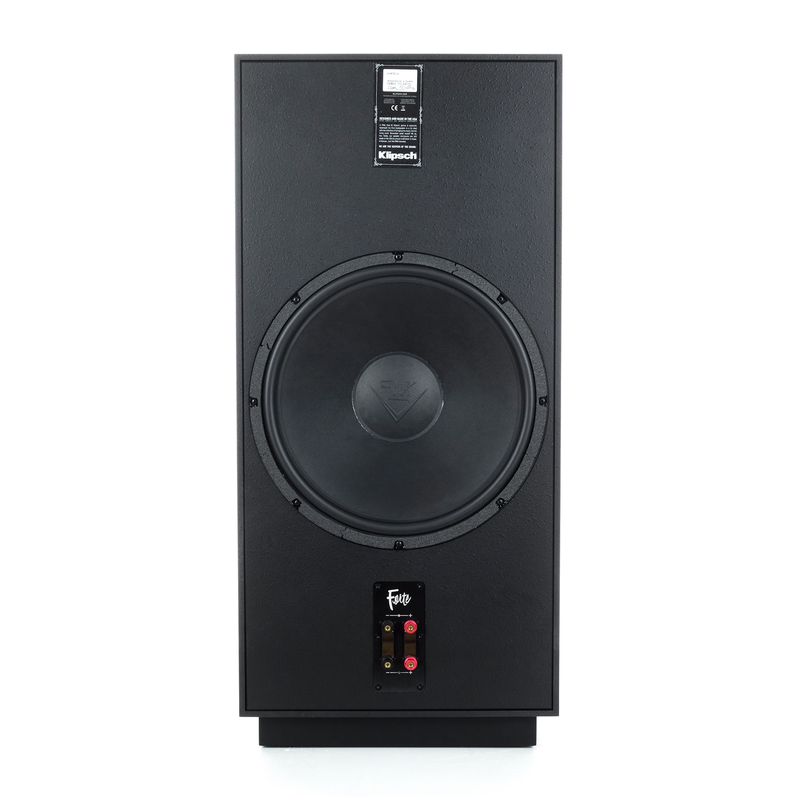 O diferencial técnico fundamental da Klipsch Forte IV reside no seu sistema de graves, que apresenta um woofer K-281 de 12 polegadas com cone de fibra composta e um massivo radiador passivo traseiro de 15 polegadas. O dispositivo apresenta uma configuração que utiliza o radiador passivo para estender a resposta de frequências baixas sem a necessidade de dutos convencionais, sendo a unidade que opera para fornecer graves profundos, rápidos e com grande autoridade rítmica. Este conjunto é o componente responsável por uma base sonora robusta e controlada, sendo o processo que é responsável por manter o impacto dinâmico mesmo em passagens musicais complexas.
