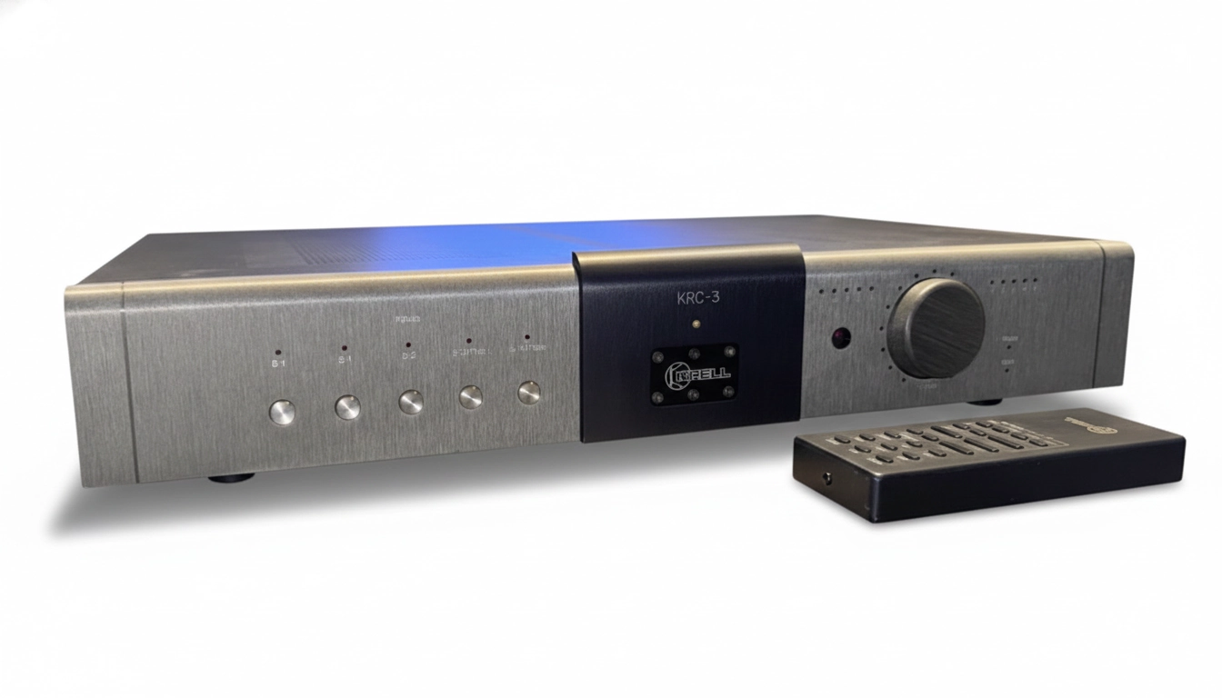 O pré-amplificador Krell KRC-3 é um componente de estado sólido de alta fidelidade que se destaca por oferecer uma sonoridade envolvente e musical dentro da linhagem clássica da marca. Ele representa uma evolução no design da Krell, buscando equilibrar a precisão analítica tradicional com uma apresentação mais fluida e relaxada, sendo muitas vezes descrito como um dos pré-amplificadores de transistores que mais se aproxima da textura de sistemas valvulados. O design externo é sóbrio e robusto, com um chassi de aço e painel frontal em alumínio escovado que abriga controles essenciais e um display de LEDs para indicação de volume e balanço.
