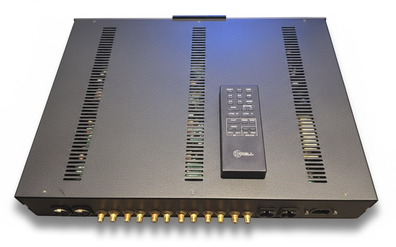 O diferencial técnico fundamental do KRC-3 reside no seu sofisticado sistema de controle de volume, que é herdado diretamente do modelo topo de linha KRC-HR. Ele consiste em uma rede de resistores de precisão de nível militar comutados por relés de alta qualidade controlados digitalmente. Este sistema opera para oferecer mais de 300 passos discretos de atenuação, garantindo um casamento de canais quase perfeito e eliminando os ruídos e a degradação de sinal comuns em potenciômetros analógicos convencionais. O controle é logarítmico e otimizado para a audição musical, permitindo ajustes finos sem comprometer o palco sonoro ou a integridade dinâmica.