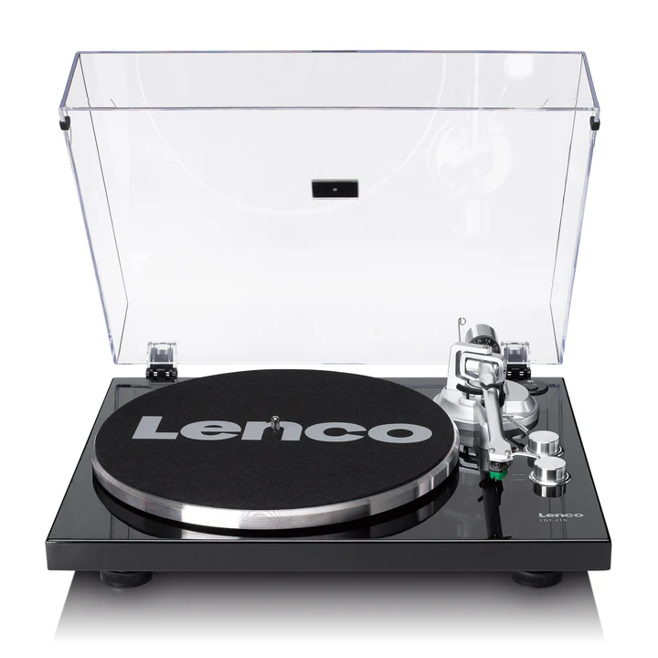 O Lenco LBT-215BK é um toca-discos moderno com tração por correia que equilibra o design minimalista com funcionalidades digitais avançadas. Ele apresenta um acabamento em preto brilhante e é um equipamento voltado para quem busca integrar a reprodução analógica de discos de vinil com a conveniência de sistemas de áudio sem fio.