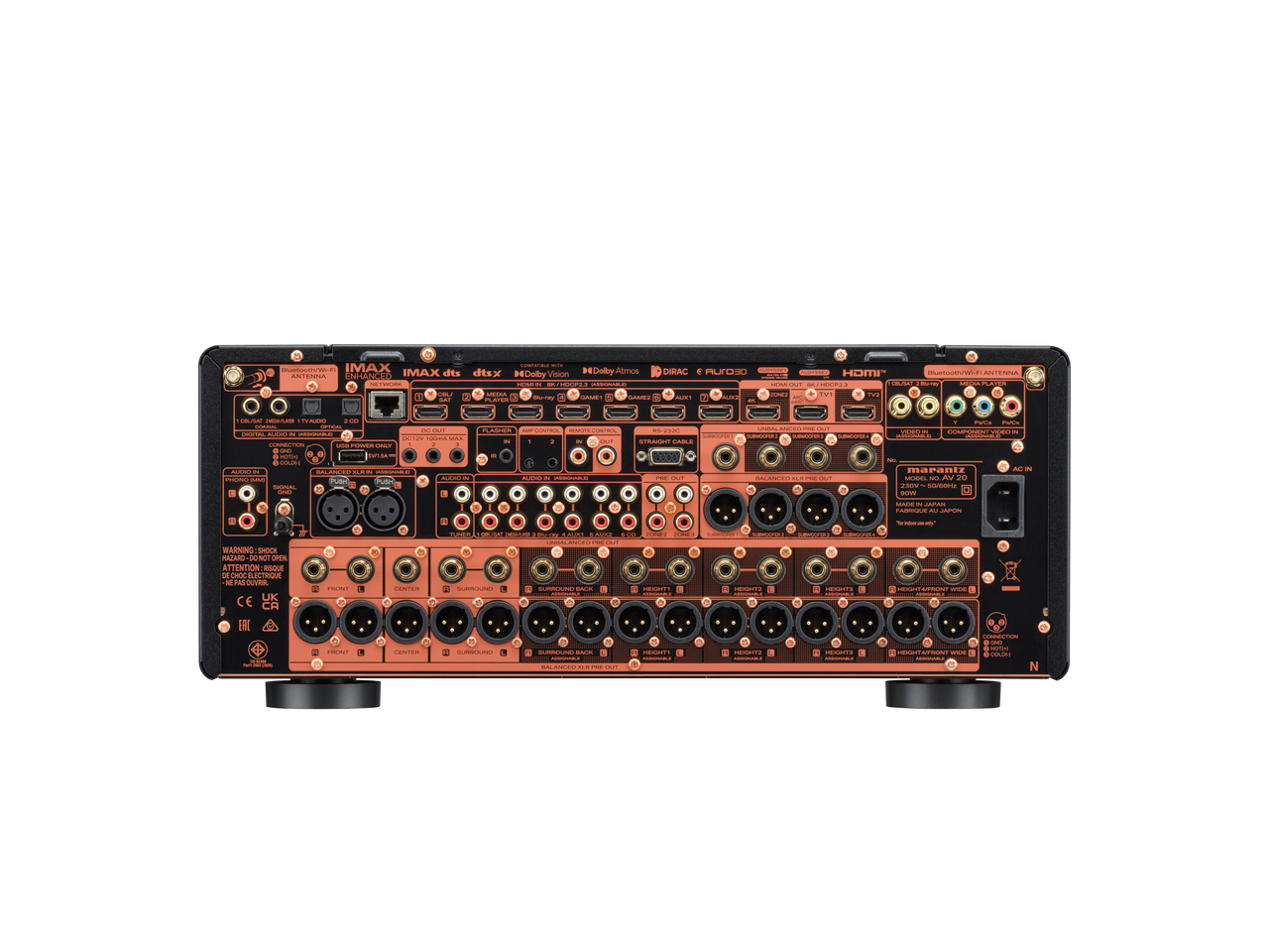 O AV 20 representa o mais alto padrão de desempenho e capacidade para sistemas de home theater de referência. Este pré-amplificador AV balanceado de 13,4 canais de referência possui circuitos discretos Marantz HDAM e sete entradas HDMI, cada uma compatível com 8K UHD.
