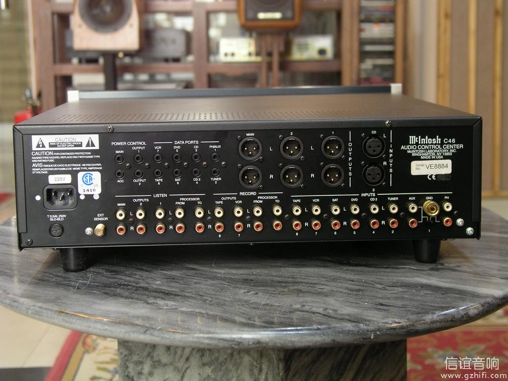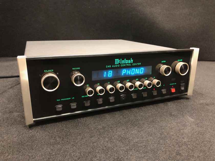 O McIntosh C46, ​​lançado nos Estados Unidos em 2007, é um centro de controle de áudio e pré-amplificador estéreo com som excepcional e construção de alta qualidade. A marca McIntosh é mundialmente famosa em amplificadores audiófilos, e este modelo não é exceção. O C46 é respeitado e muito procurado devido ao seu som excelente e à sua qualidade de construção excepcional. O equalizador de 8 bandas é excelente, e o controle de volume de taxa variável (VRV) permite um controle preciso e semelhante ao analógico da amplitude do sinal. Devido à sua qualidade geral, os amplificadores McIntosh tendem a manter seu valor ao longo do tempo. O C46 é um equipamento sólido que deve durar muitos anos. Por fim, o C46 é extremamente atraente, com um design elegante e simples e os icônicos botões no estilo McIntosh.