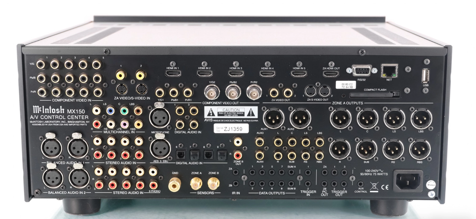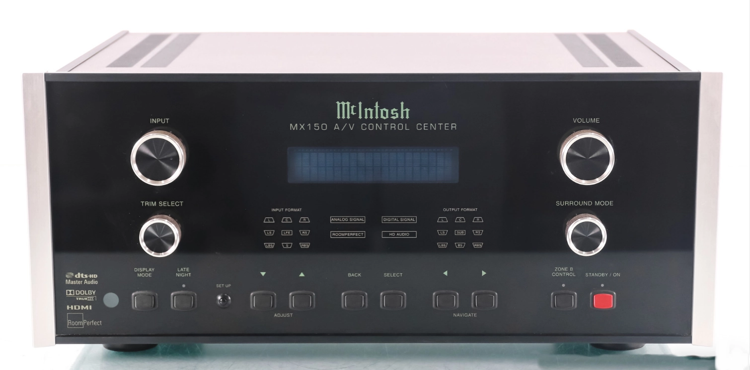 O McIntosh MX150 funciona como um sofisticado centro de controle para sistemas de home theater de alta definição, oferecendo processamento de áudio para até 12 canais. Ele é projetado para decodificar os formatos de áudio lossless mais exigentes de sua época, como Dolby TrueHD e DTS-HD Master Audio, garantindo que a experiência sonora do cinema seja reproduzida com fidelidade absoluta em ambiente doméstico. O design mantém a estética clássica da marca com o painel de vidro preto e iluminação por fibra ótica, integrando-se perfeitamente à linha de amplificadores e fontes de sinal da McIntosh.