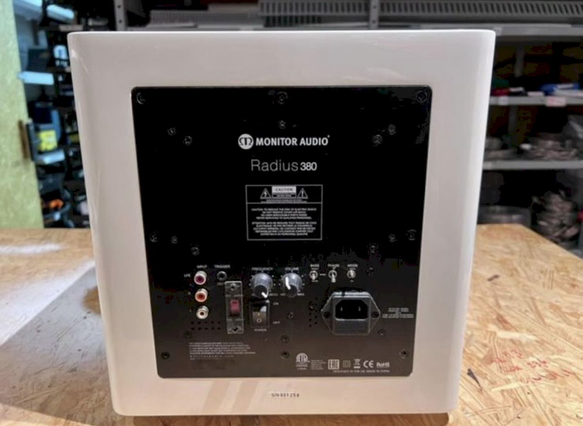 - one 8″ side-firing C-CAM long-throw passive bass radiator
