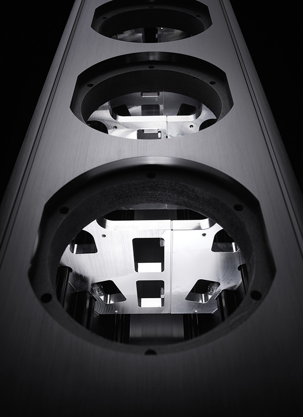A caixa acústica do tipo torre Piega Coax 811 da série Gen2 é o modelo de referência da linha Coax, representando a máxima expressão da engenharia suíça em reprodução sonora de alta fidelidade. Ela é um sistema de três vias de grande porte projetado para preencher salas amplas com uma sonoridade transparente e dinâmica, sendo desenvolvida com um gabinete de alumínio extrudado que combina elegância visual com uma rigidez mecânica absoluta. O design externo apresenta uma estrutura metálica sem costuras e com tensores internos de alta pressão, garantindo um ambiente acústico inerte que é o elemento essencial para a eliminação de ressonâncias de gabinete e para a reprodução de um palco sonoro extremamente preciso e detalhado.