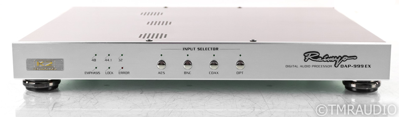 O Reimyo DAP-999EX, um conversor digital-analógico de alta pureza, oferece desempenho incomparável e inédito em sua classe, proporcionando um som requintado que você nunca experimentou antes. Utiliza a tecnologia K2 da Victor do Japão, um circuito integrado DAC de 24 bits, corpo rígido totalmente em alumínio, componentes personalizados, incluindo transformadores e capacitores, fiação interna especial para transmissão de sinal de altíssima velocidade e pureza, pés de ajuste com design original, além de nossa orientação e estudo rigoroso do comportamento digital, que o convidam a um novo patamar na experiência de ouvir música!