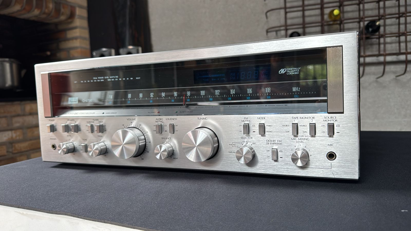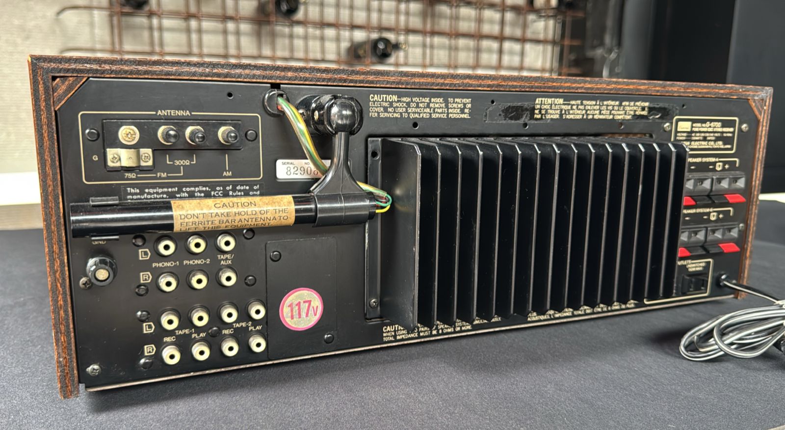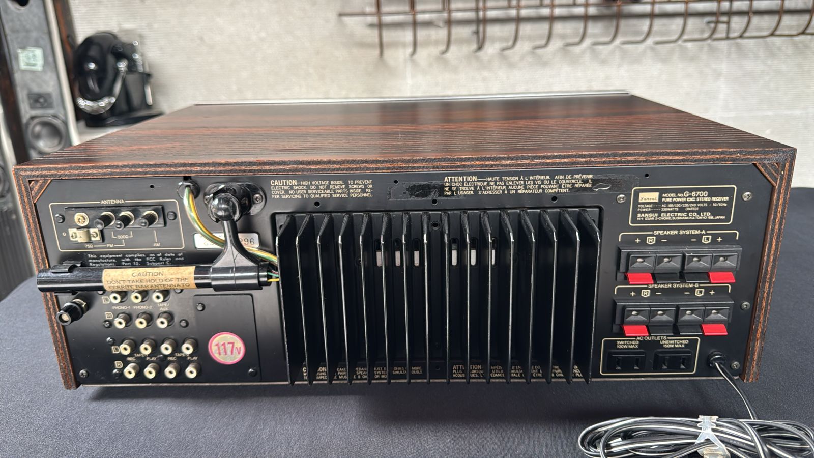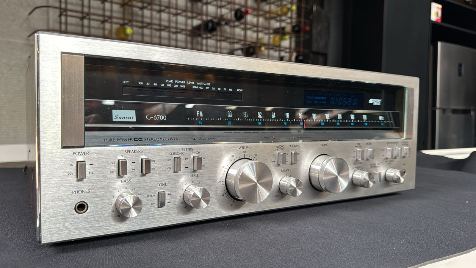 Este é o Sansui G-6700 . Foi produzido entre 1980 e 1982 e tinha um preço de tabela de US$ 730,00. Sua potência nominal era de 90 watts por canal em 8 ohms e sua distorção harmônica total era de 0,025%.