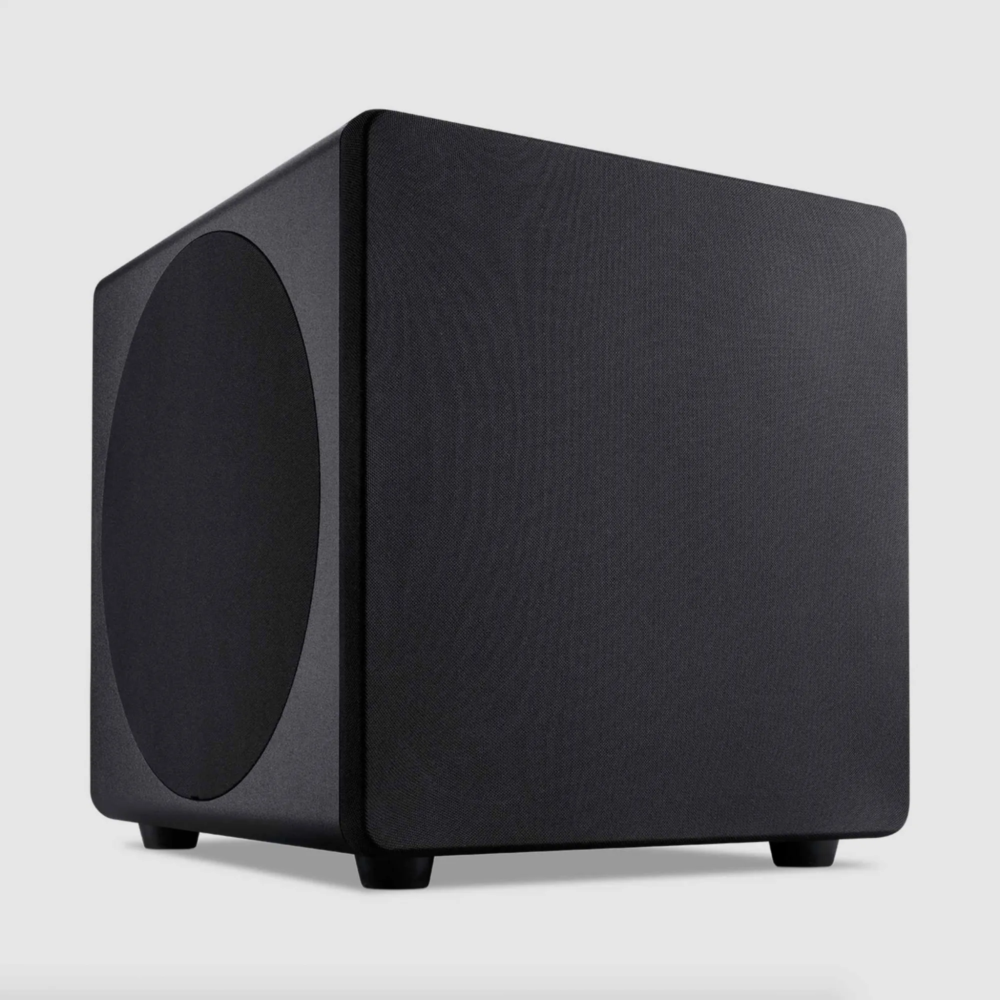 O design do aparelho apresenta uma configuração de três drivers de 8 polegadas, composta por um driver ativo de disparo frontal e dois radiadores passivos de disparo lateral. Ele é um sistema que aproveita o movimento do driver principal para pressurizar o ar dentro do gabinete e acionar os radiadores, resultando em uma resposta de graves muito mais robusta do que o tamanho do chassi sugere. Essa arquitetura permite que o subwoofer alcance frequências baixas com autoridade, mantendo uma pegada física reduzida.