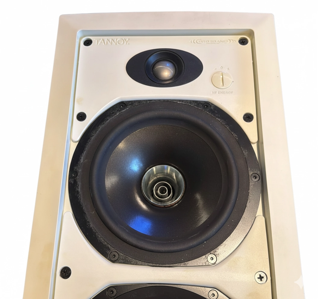 A caixa incorpora o conceito WideBand da Tannoy, utilizando um driver de alta frequência capaz de atingir mais de 50 kHz. Essa ampla largura de banda não serve apenas para frequências inaudíveis, mas reduz as anomalias de fase na faixa audível, resultando em uma reprodução de instrumentos e vozes muito mais natural e detalhada. O guia de ondas Tulip integrado ao driver coaxial controla a dispersão sonora de forma rigorosa, garantindo uma cobertura uniforme em toda a área de audição. Isso minimiza as reflexões indesejadas nas superfícies laterais e melhora a clareza do diálogo em sistemas de cinema residencial.