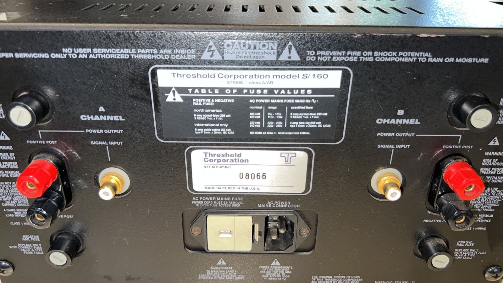 THRESHOLD S-160 STASIS – Amplificador de Potência Classe A/AB, 80 Watts