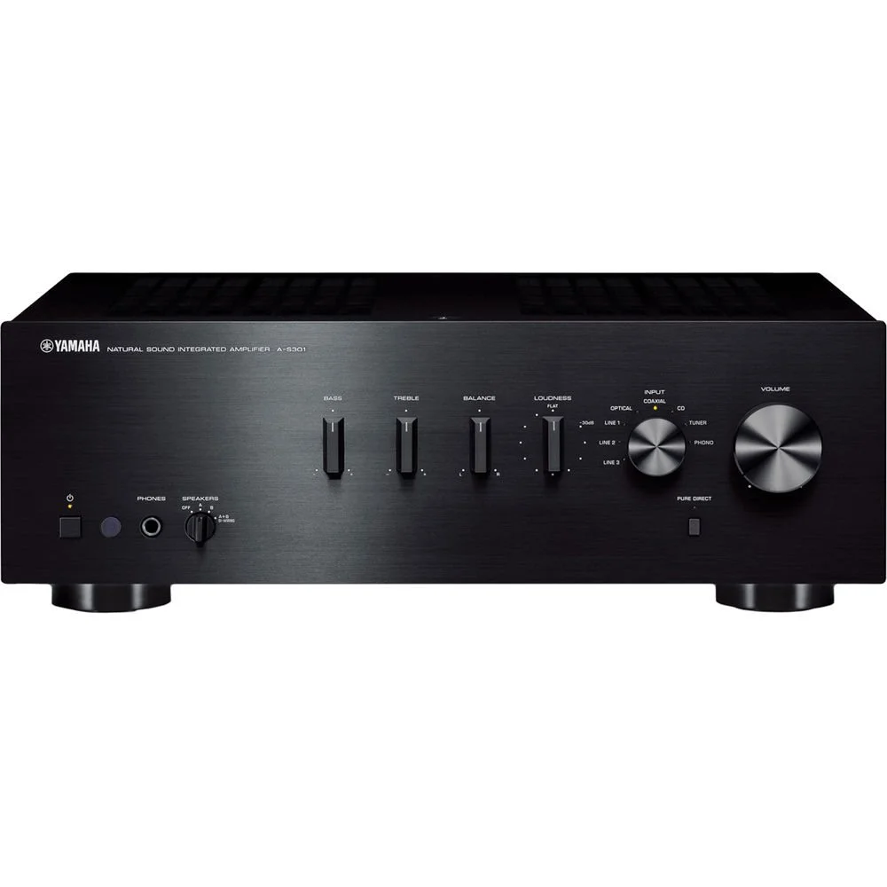 O Yamaha A-S301 é um amplificador integrado de entrada projetado para oferecer alta fidelidade sonora com um excelente custo-benefício. Ele segue a filosofia ToP-ART (Total Purity Audio Reproduction Technology) da Yamaha, que foca em um design de circuito direto e simétrico para garantir a máxima pureza do sinal. O chassi apresenta uma construção robusta com uma base “Art Base” que minimiza vibrações externas, mantendo a estética clássica e elegante característica da linha Hi-Fi da marca, com botões rotativos e painel frontal em alumínio.